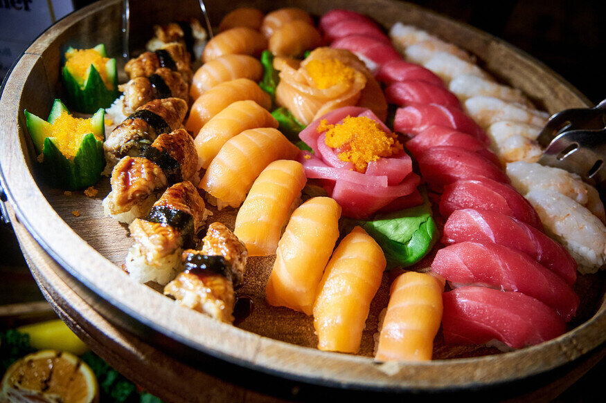 a plate of sushi on a table