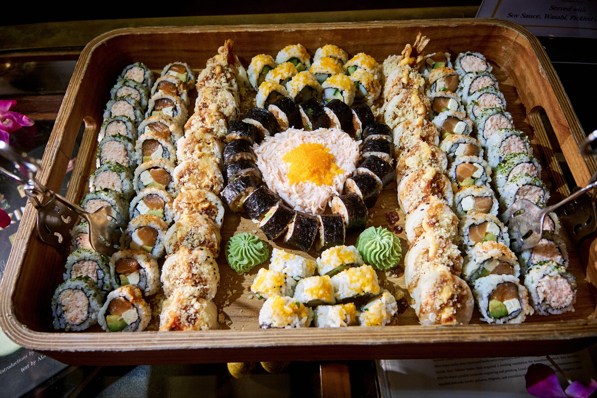 a tray of sushi on a table