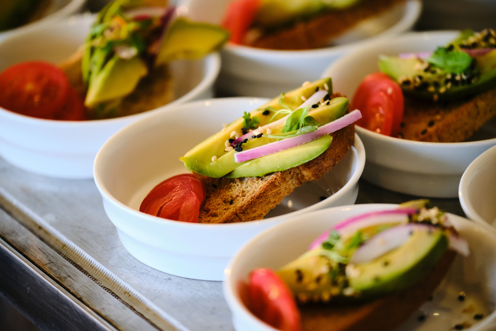 a group of bowls of food