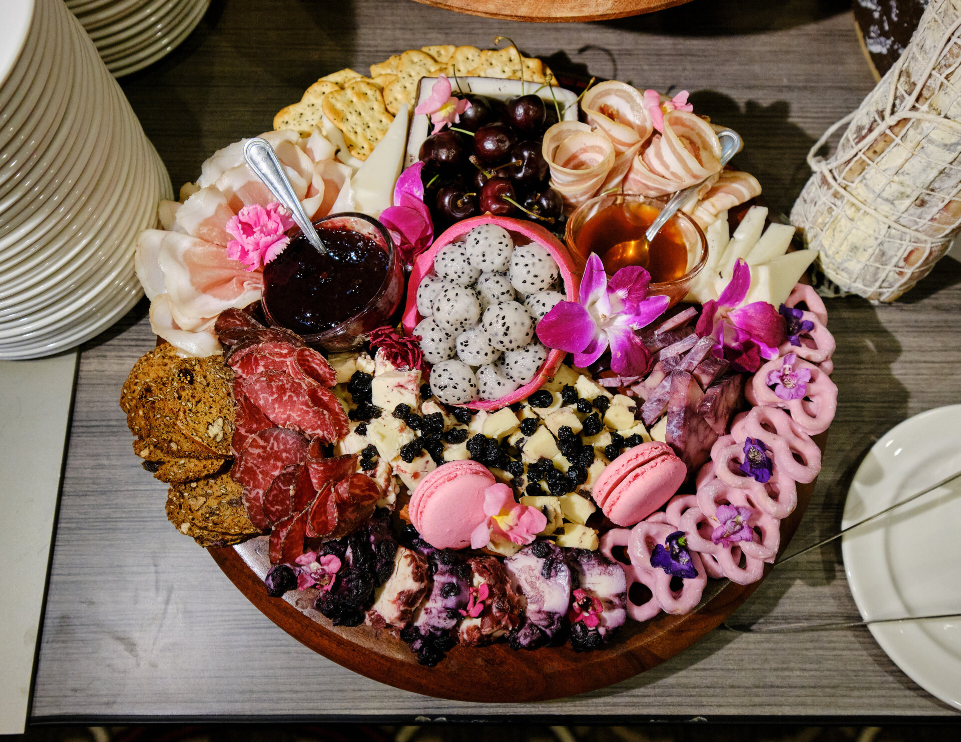 a charcuterie board on a table